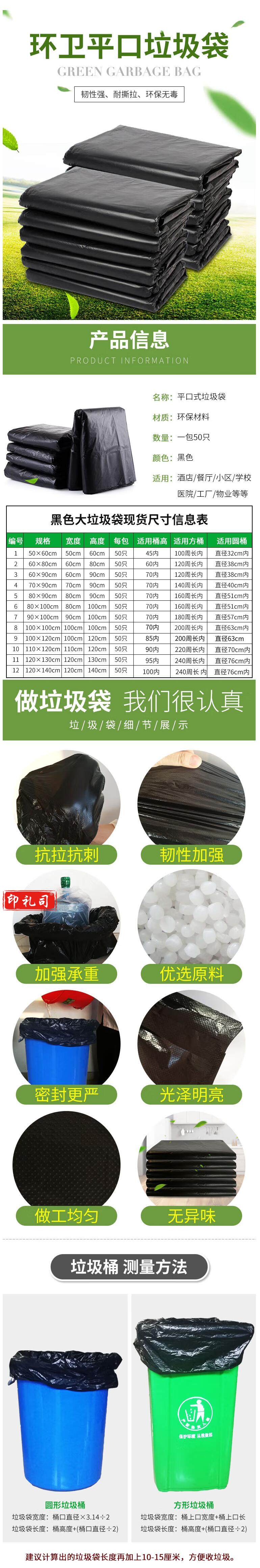 巨联100*110cm加厚黑色大垃圾袋物业环卫大号清洁平口大码塑料袋 50个/捆