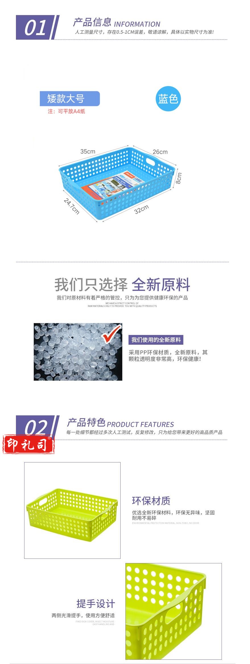 收纳篮 置物筐 收纳筐 长方形杂物筐 34*25*8.5cm 货号:LJ