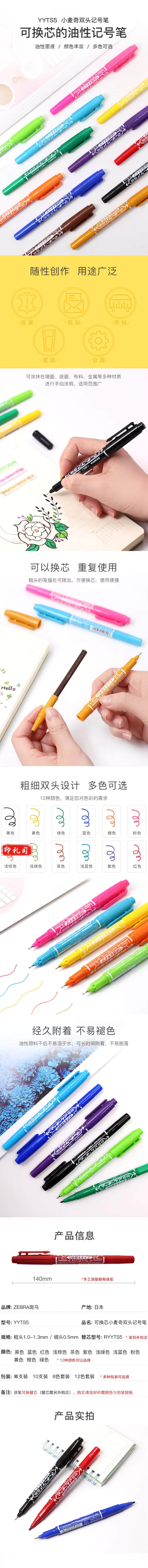 斑马 YYTS5 黑色 小双头记号笔 多用签字笔光盘笔