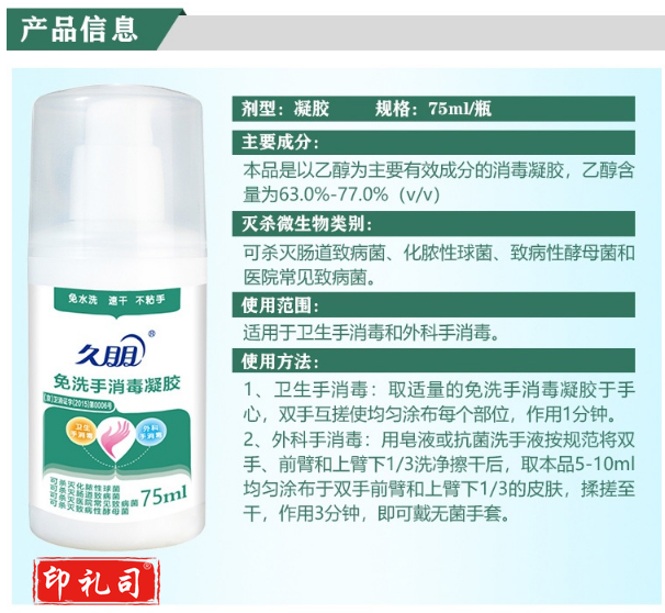 久朋 便携式75ml 免洗手消毒液 杀菌洗手液 75%