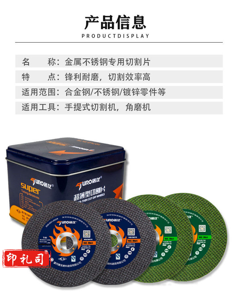 屠龙 107*1.2*16(绿色)50片/盒 不锈钢切片角磨机打磨片超薄切片