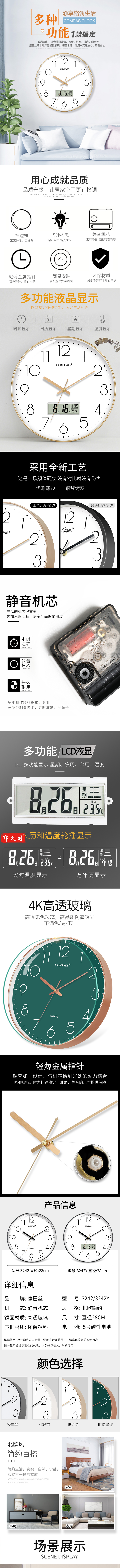 康巴丝(Compas)C3242Y 挂钟 客厅静音万年历钟表