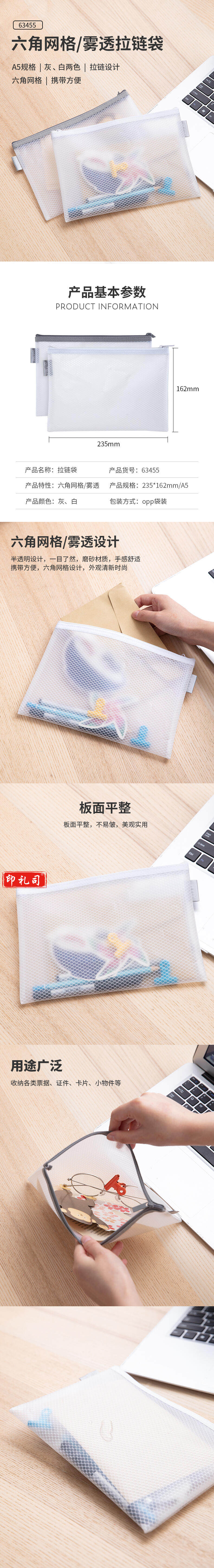 得力(deli)A5拉链袋网格透明文件袋 EVA环保材质雾面六角格 63455