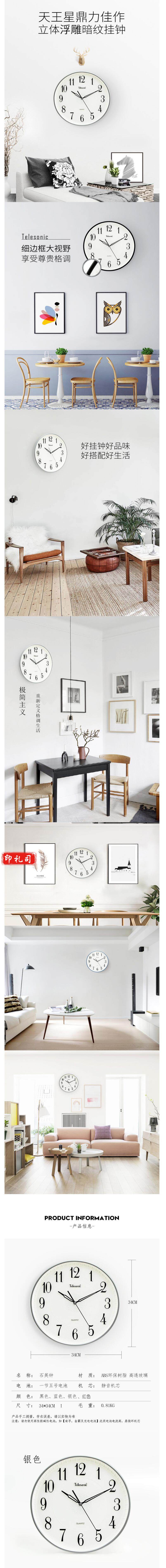 天王星(Telesonic)Q5679-1挂钟 14英寸 客厅卧室时钟 简约静音扫描石英钟表 银色