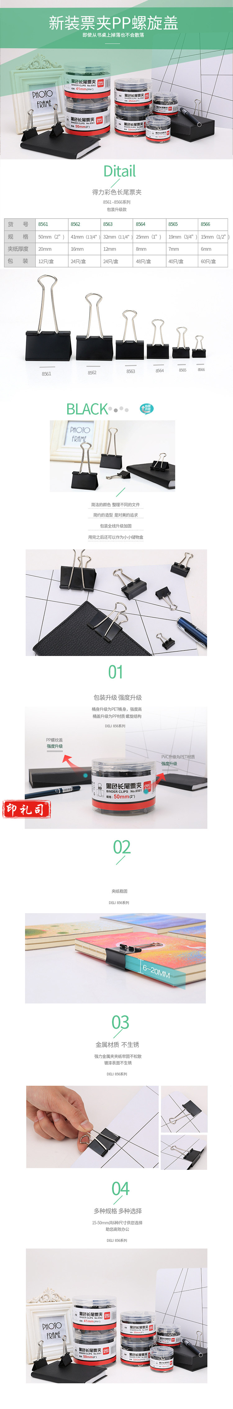 得力 48只 25mm黑色长尾夹票夹 金属燕尾夹 票据文件夹子中号8564