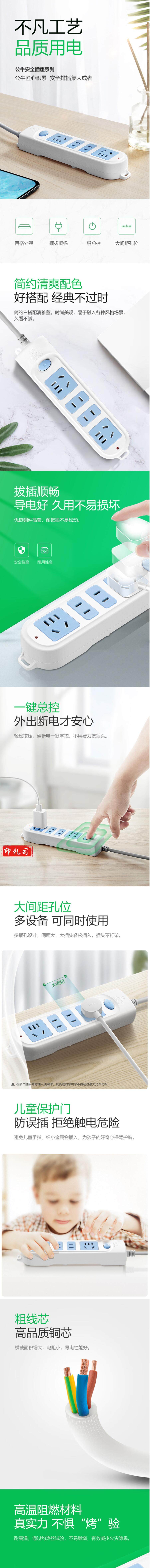 公牛GN-607 4位总控全长4米插排接线板插座