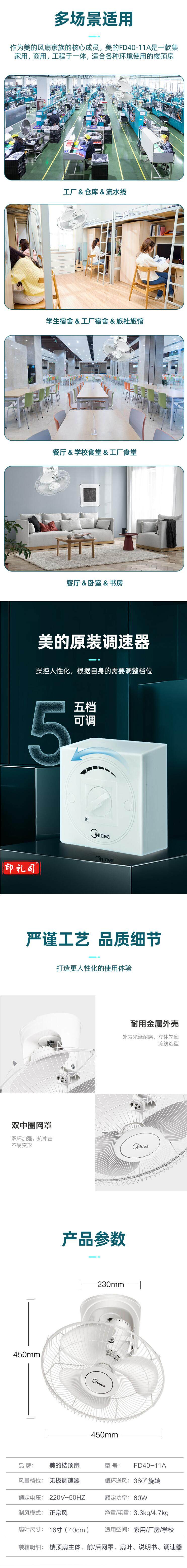 美的 FD40-11A 楼顶扇 吸顶扇 学校宿舍电扇 摇头吊顶扇