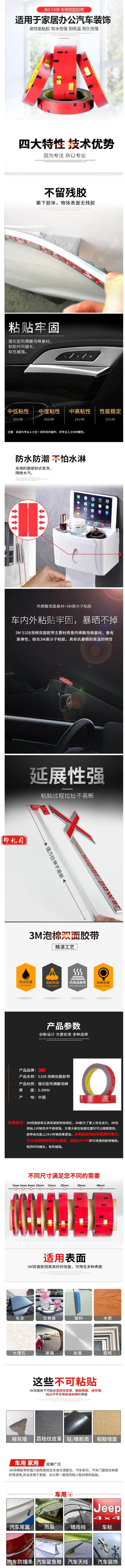 3M胶带 泡棉双面胶带 汽车/家居通用胶粘 无痕 30毫米*3米 单卷装