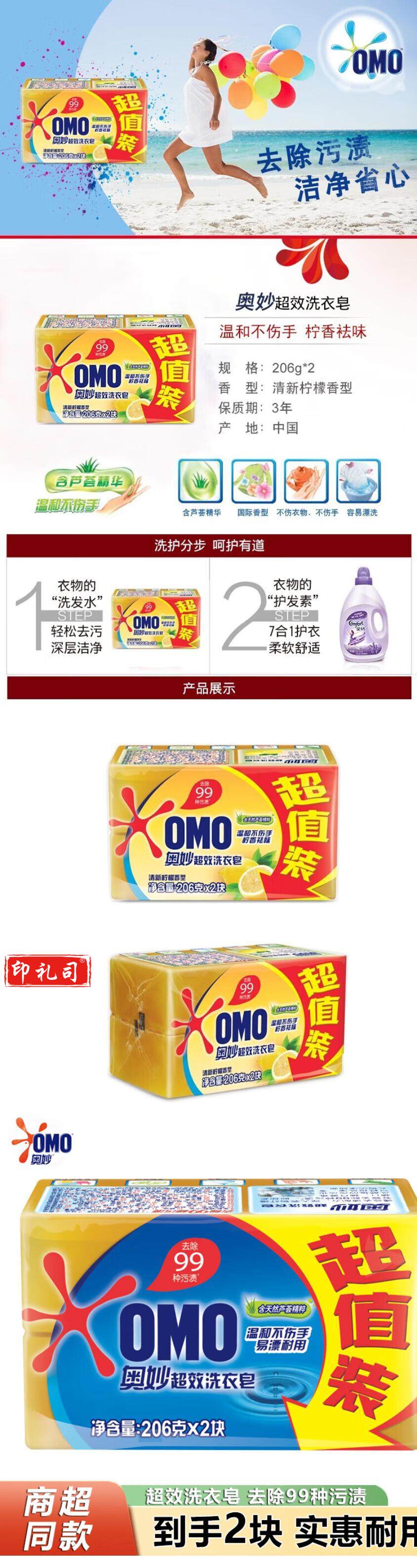 奥妙 透明皂206g*2块 超效香皂洗衣皂 (2块装随机发货)