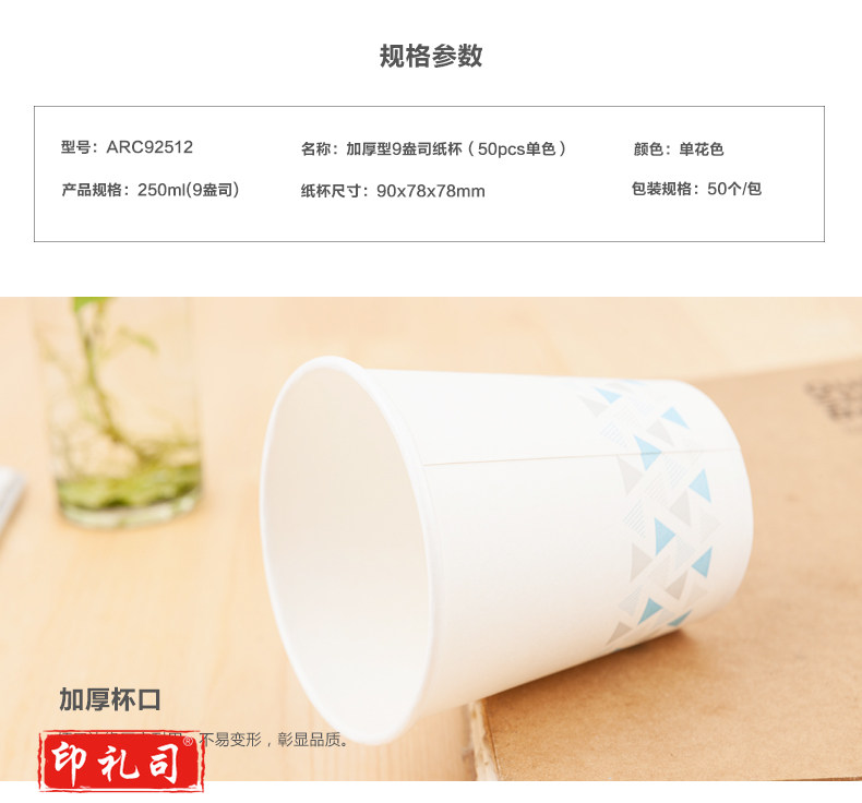 晨光(M&G)加厚型9盎司纸杯(50pcs单色)ARC92512