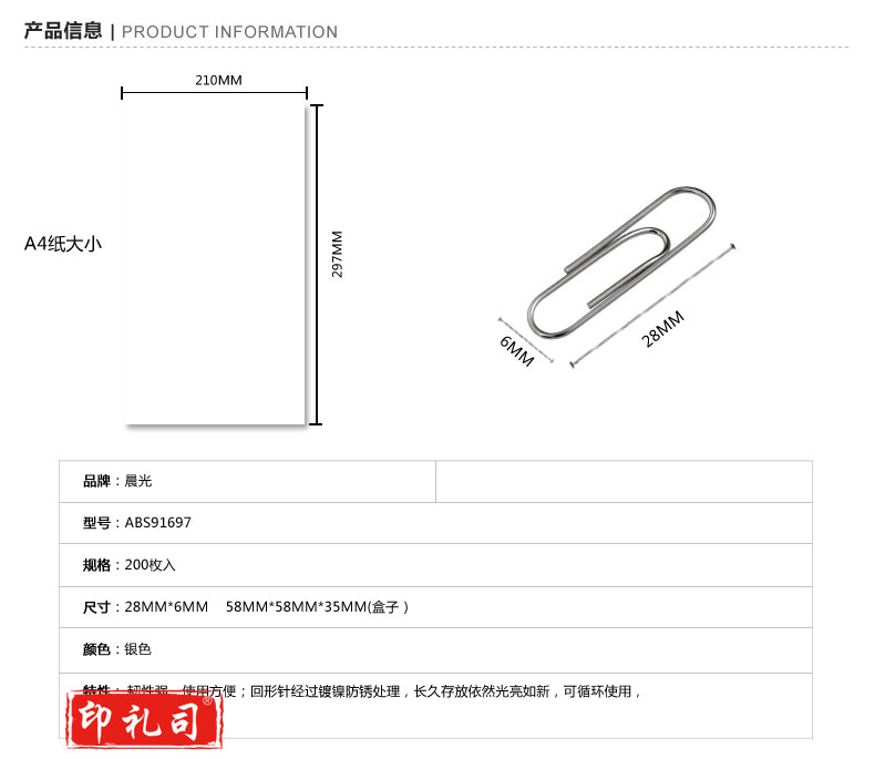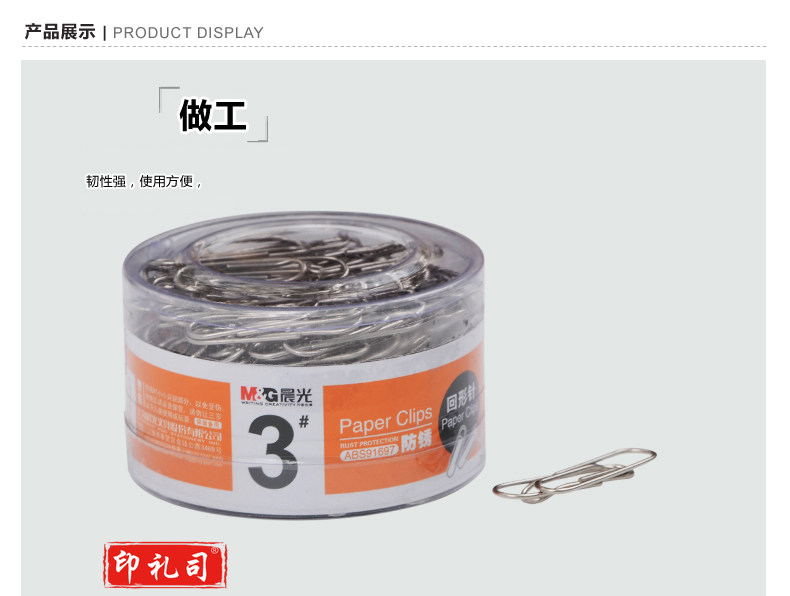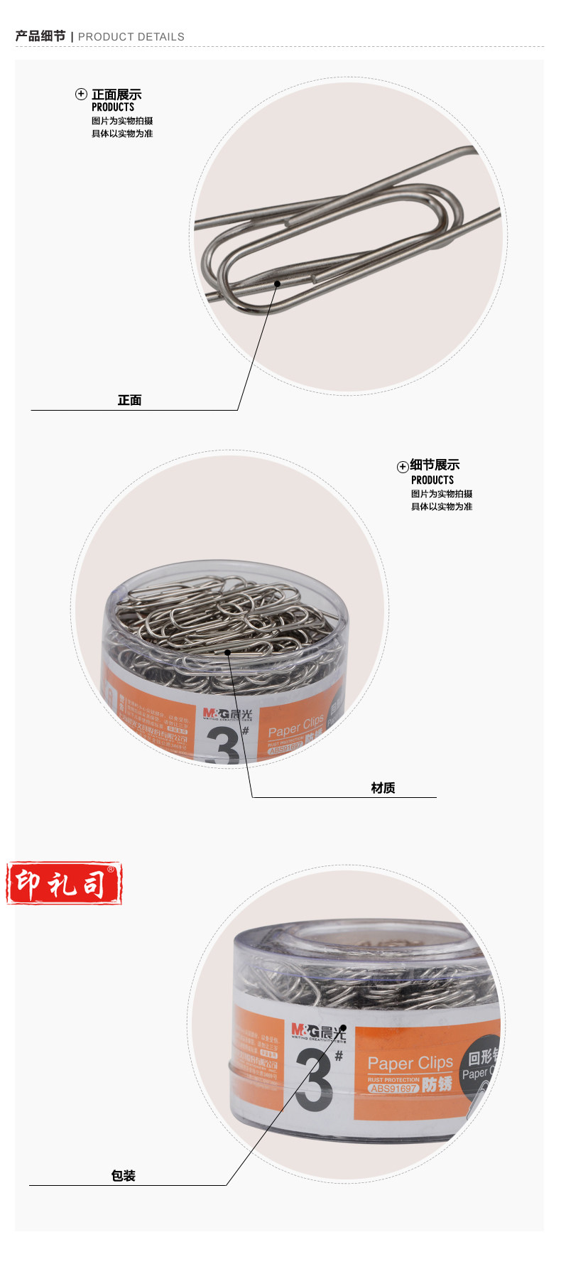 晨光 3#镀镍回形针 金属防锈曲别针 200枚/桶ABS91697