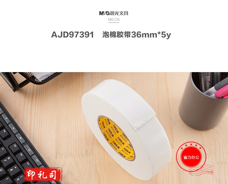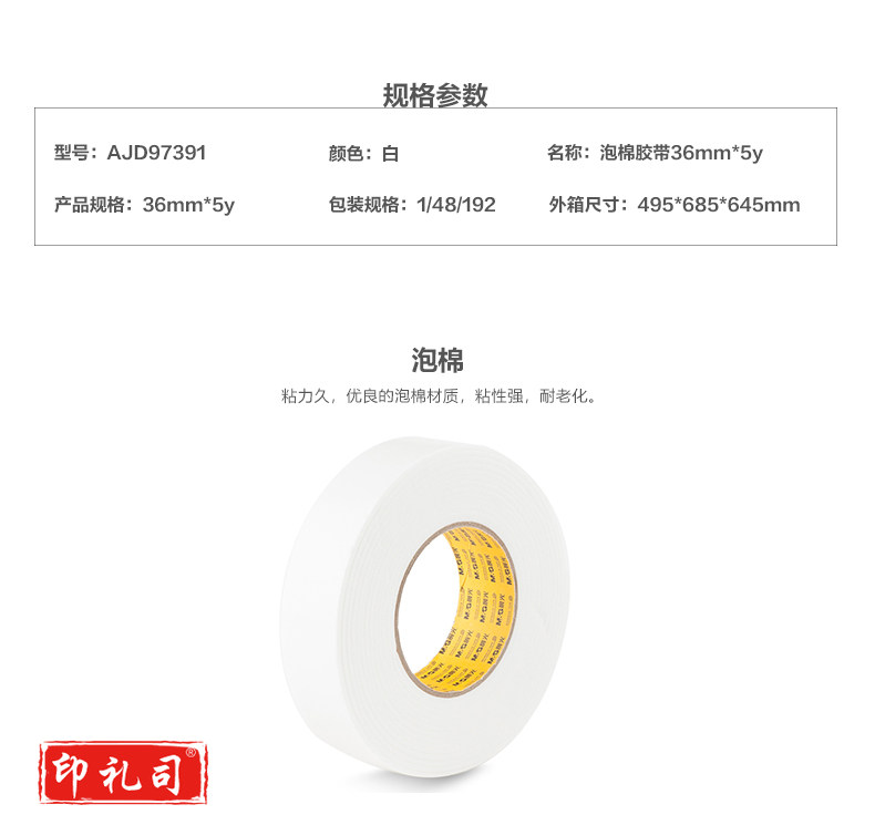 晨光强力高粘度EVA泡棉双面胶带 36mm*5y(4.57m/卷)AJD97391