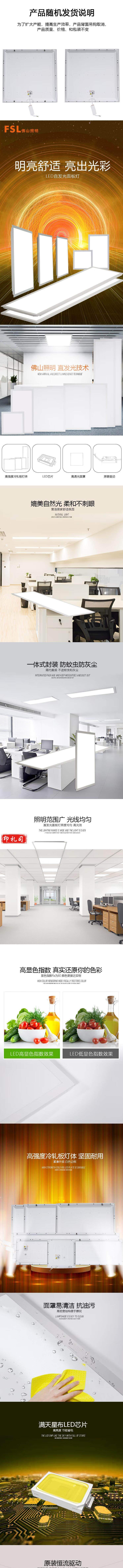 佛山照明 595*595mm 42W LED平板灯 矿棉板吊顶灯办公灯吸顶灯 白光