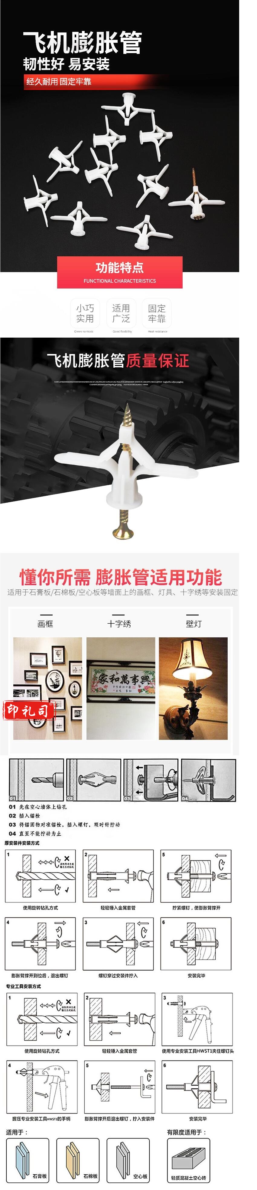 塑料飞机膨胀管螺丝 飞机膨胀管(带钉) 约50套/包
