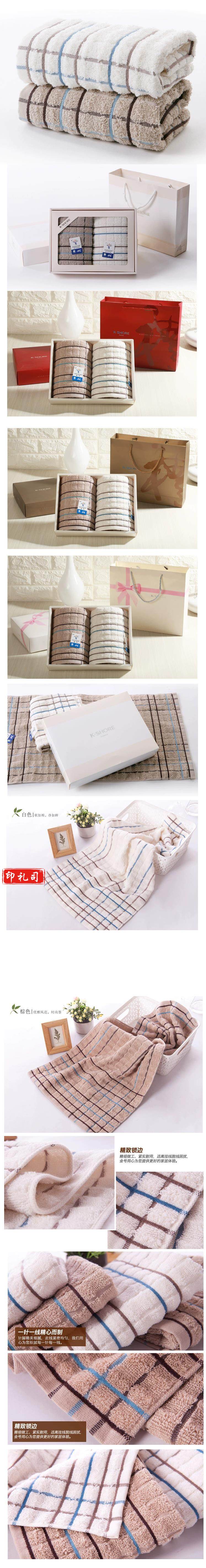 金号 毛巾家纺 纯棉条格毛巾团购礼盒 白棕毛巾各一条 84g/条 70*34cm