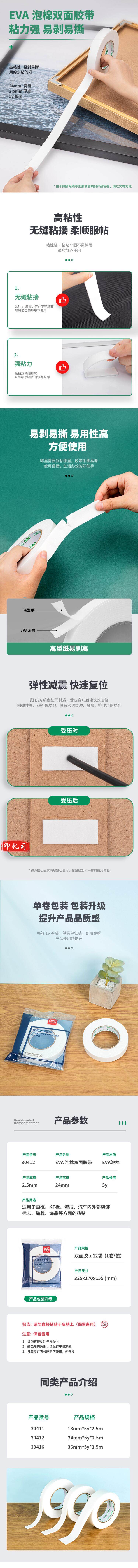 得力(deli)高粘泡棉双面胶带胶24mm*4.5米*2.5mm厚泡沫双面胶 1卷30412(12卷/包)