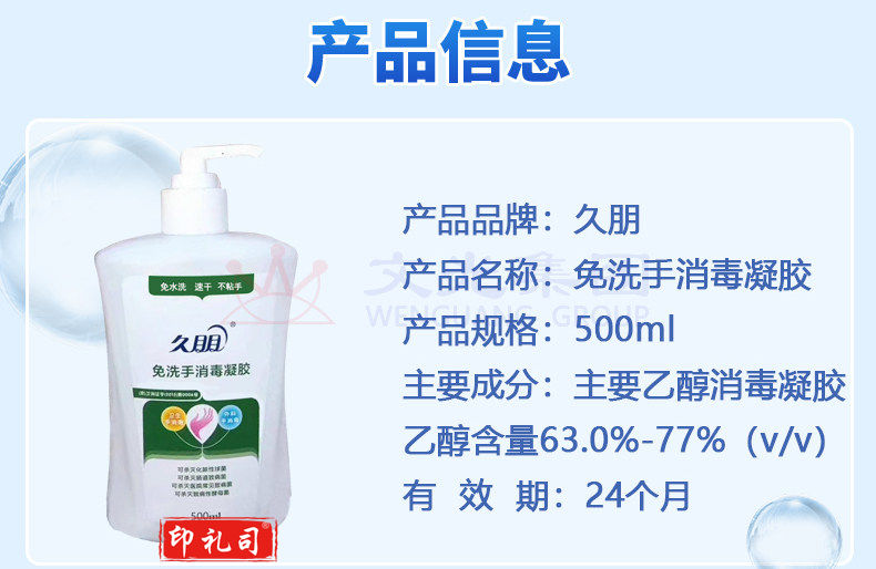 久朋 500ml 免洗手 消毒液 速干杀菌凝胶(20瓶一箱)