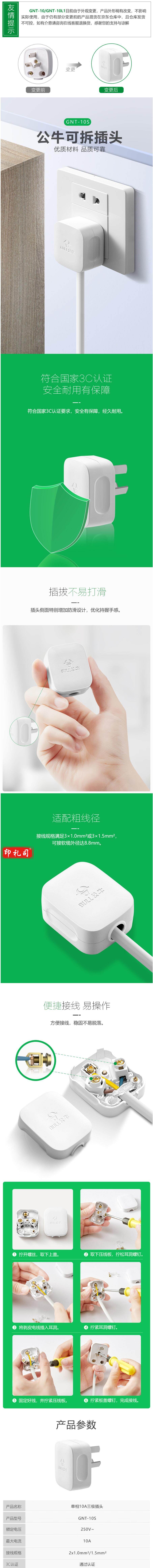 公牛 GNT-10 单相三极插头 三脚10A插头