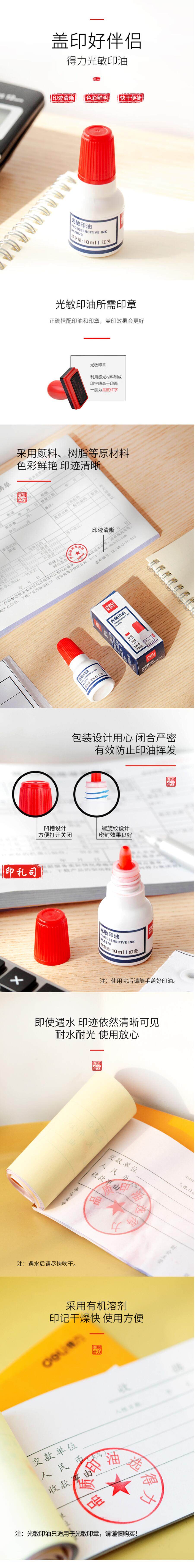 得力(deli)10ml财务印章光敏印油 红色印章印台印油 办公用品 9879
