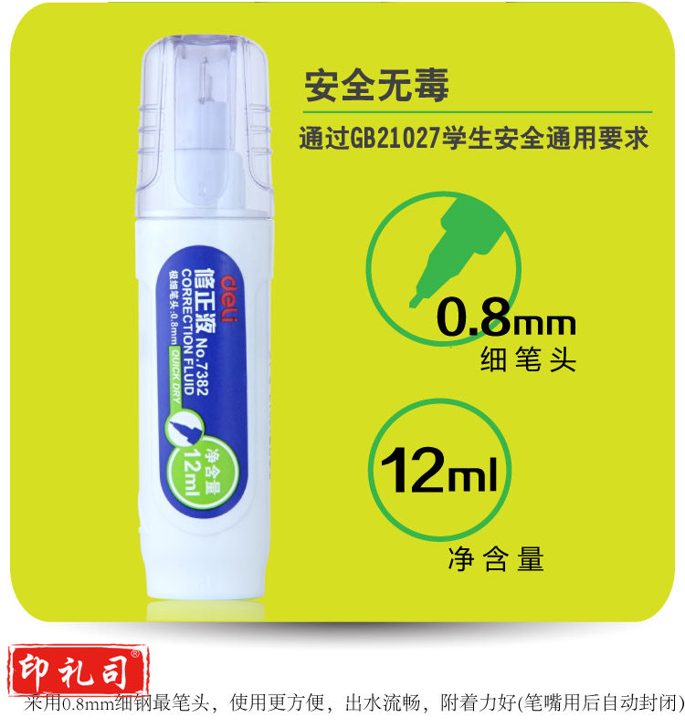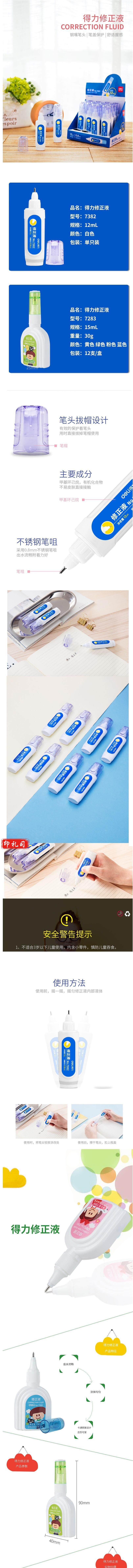 得力 12ml修正液 涂改液 改正修改液钢头 7382