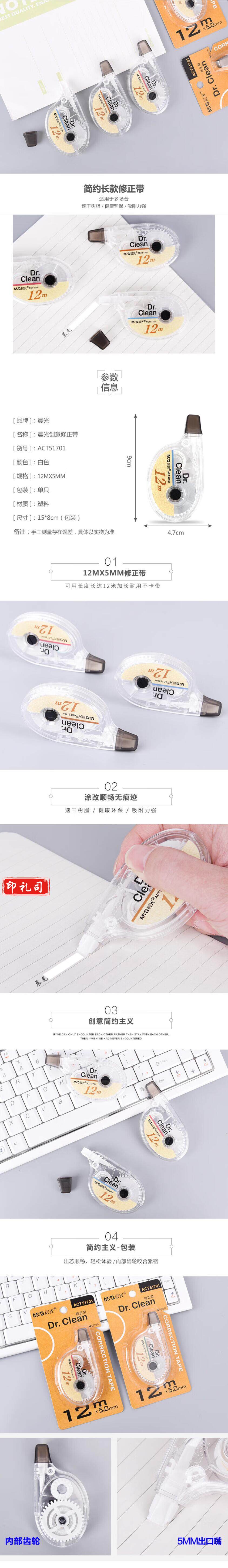 晨光 修正带 带宽5mm*12米 办公修正带轻薄平滑涂改带ACT51701