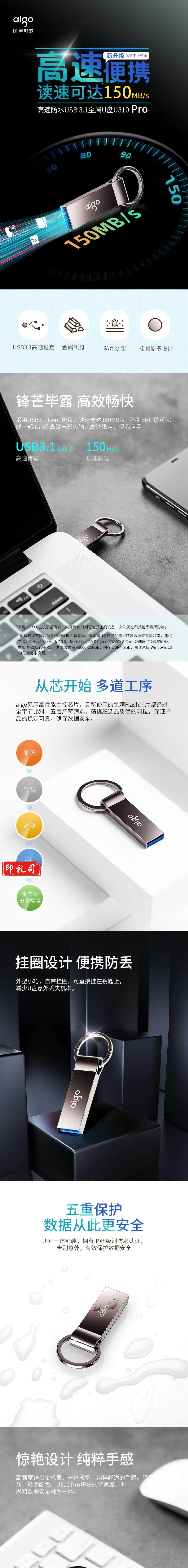 爱国者 64GB USB3.0 高速读写U盘 U310 金属U盘