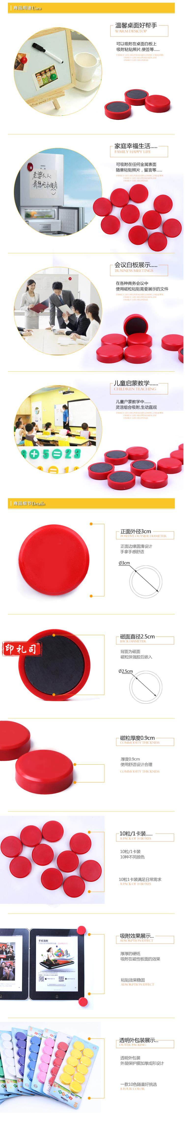 强力磁扣 白板磁铁吸贴 黑板磁铁贴大号3cm 10粒/板 货号:JC