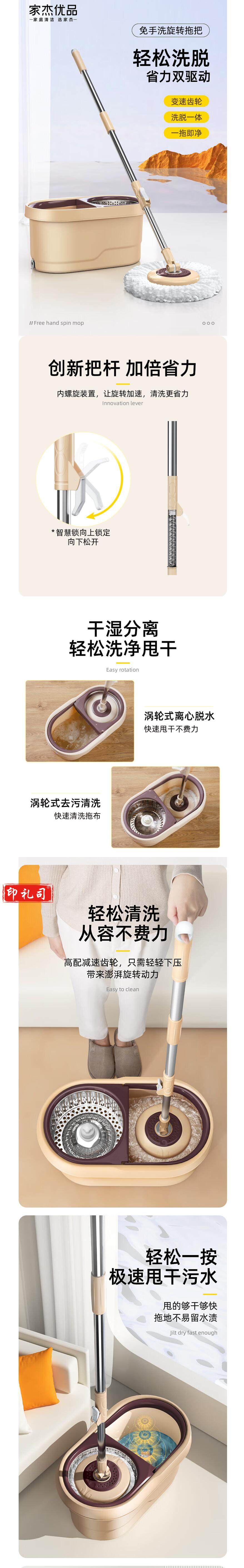 家杰优品 免手洗旋转拖把 干湿两用拖布墩布 2个拖把头