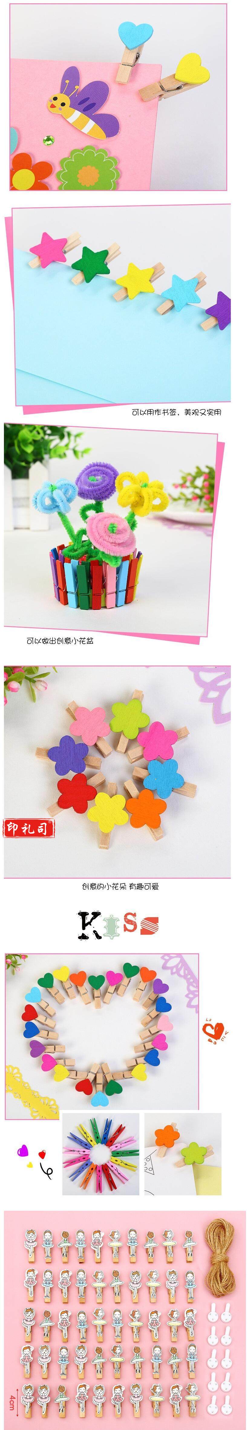 卡通相片夹子 幼儿园手工材料彩色照片木质夹 带麻绳(10个每包)