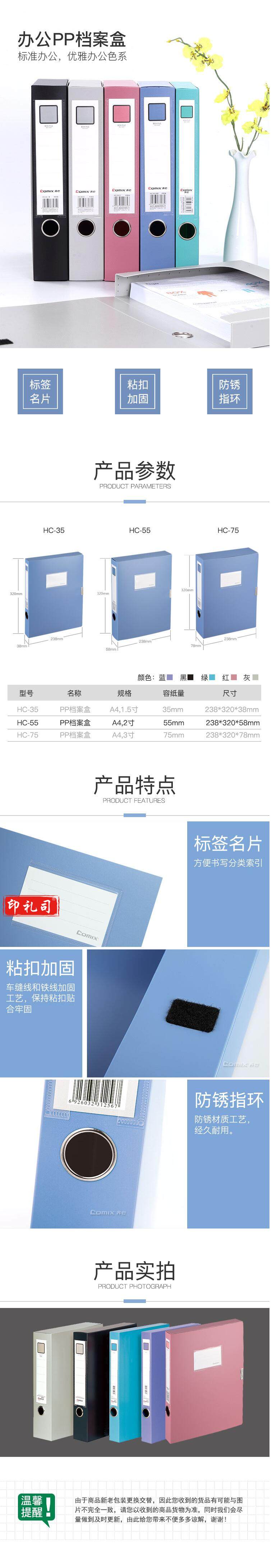 齐心HC-55档案盒粘扣档案盒/文件盒(238*318*55mm) 蓝