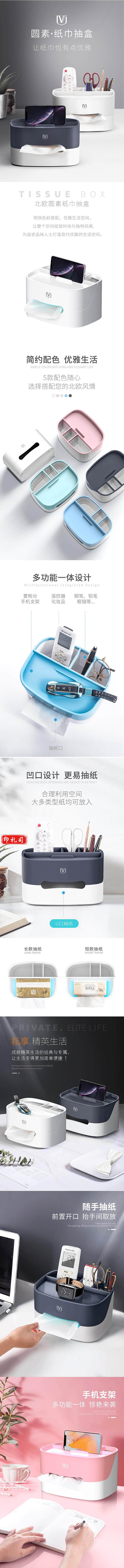 创意纸巾盒笔筒抽纸盒桌面收纳 藏青色 2716
