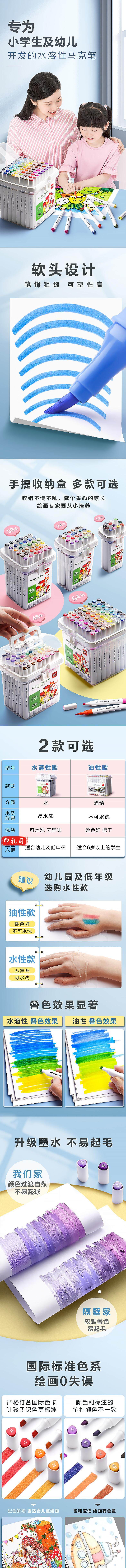 得力 70803-48色 油性马克笔儿童无毒套装彩色双头水彩笔软头绘画动漫美术生全套