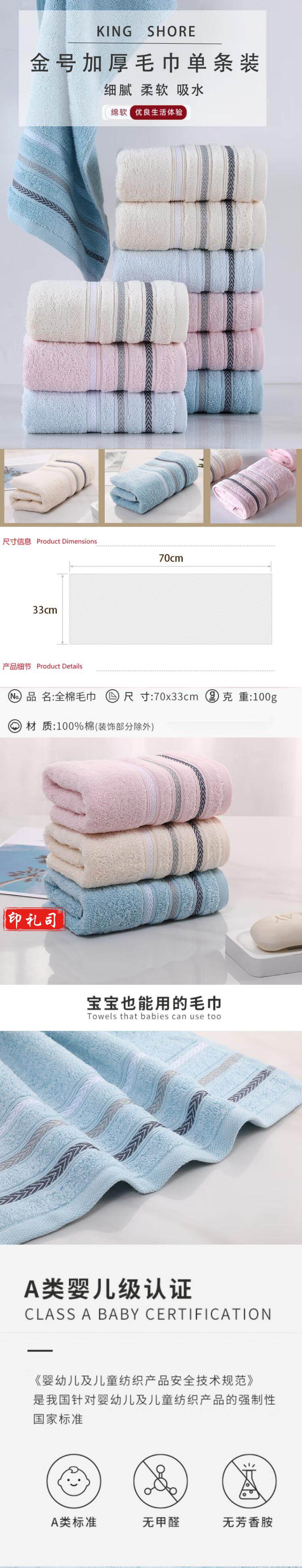 金号毛巾纯棉吸水洁面巾 洗脸毛巾 蓝色1条装 70*33cm 100g