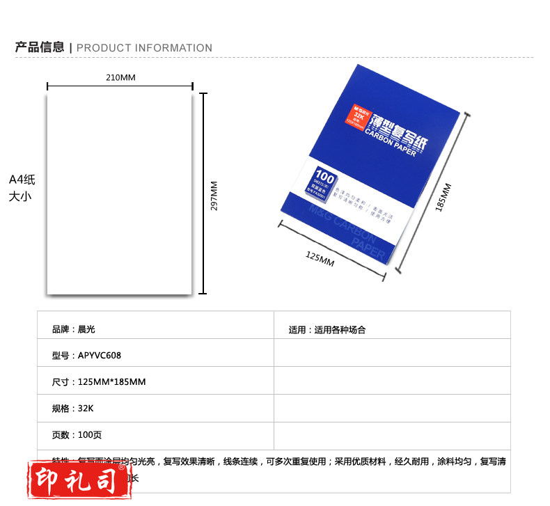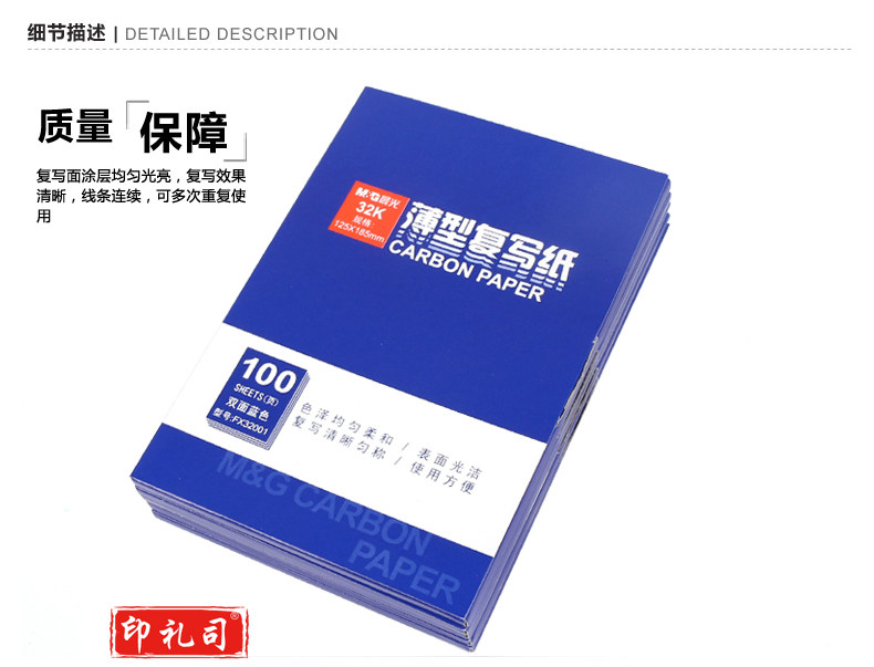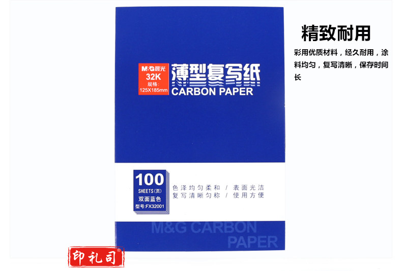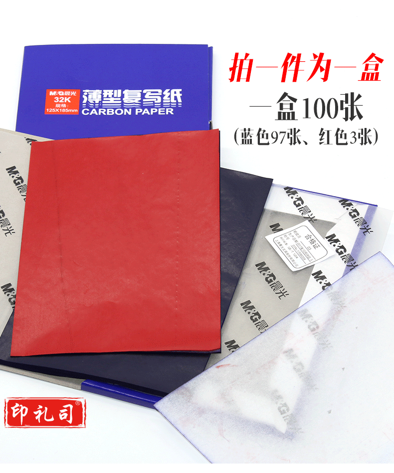 晨光(M&G)32K100页盒装蓝色复写纸APYVC608 一包50盒装
