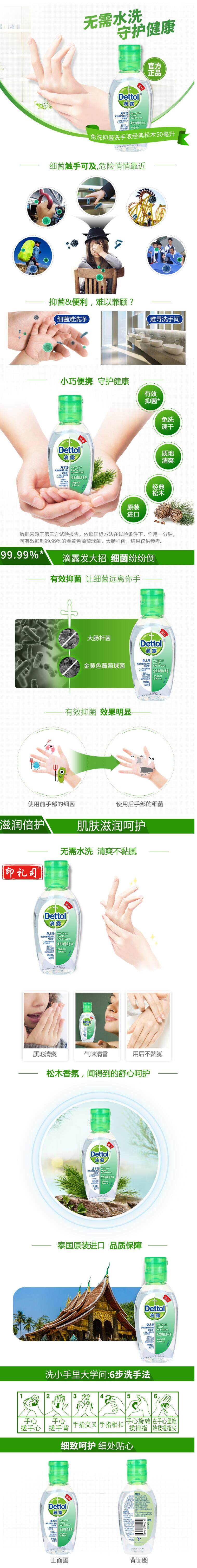 滴露(Dettol) 经典松木50ml 抑菌免洗洗手液 消毒凝胶