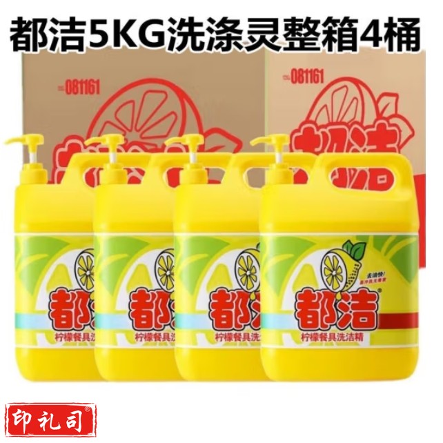 都洁 5KG洗涤灵 柠檬餐具洗洁精压嘴装(4桶装)
