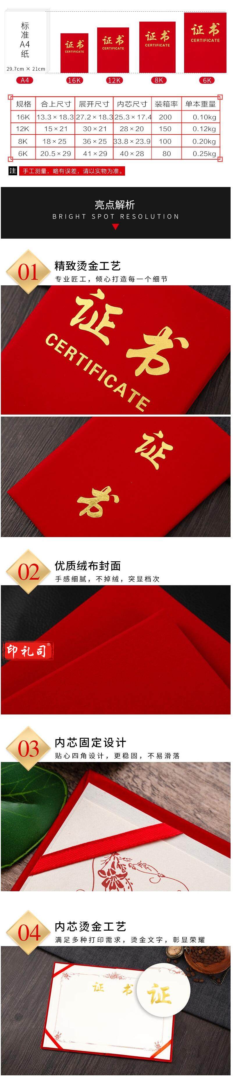 绒面证书 含内芯 26*18.3cm 含打印排版 货号:LJ