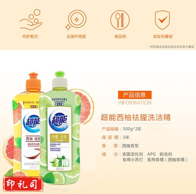 超能 西柚祛腥500g洗洁精浓离子去油洗洁精