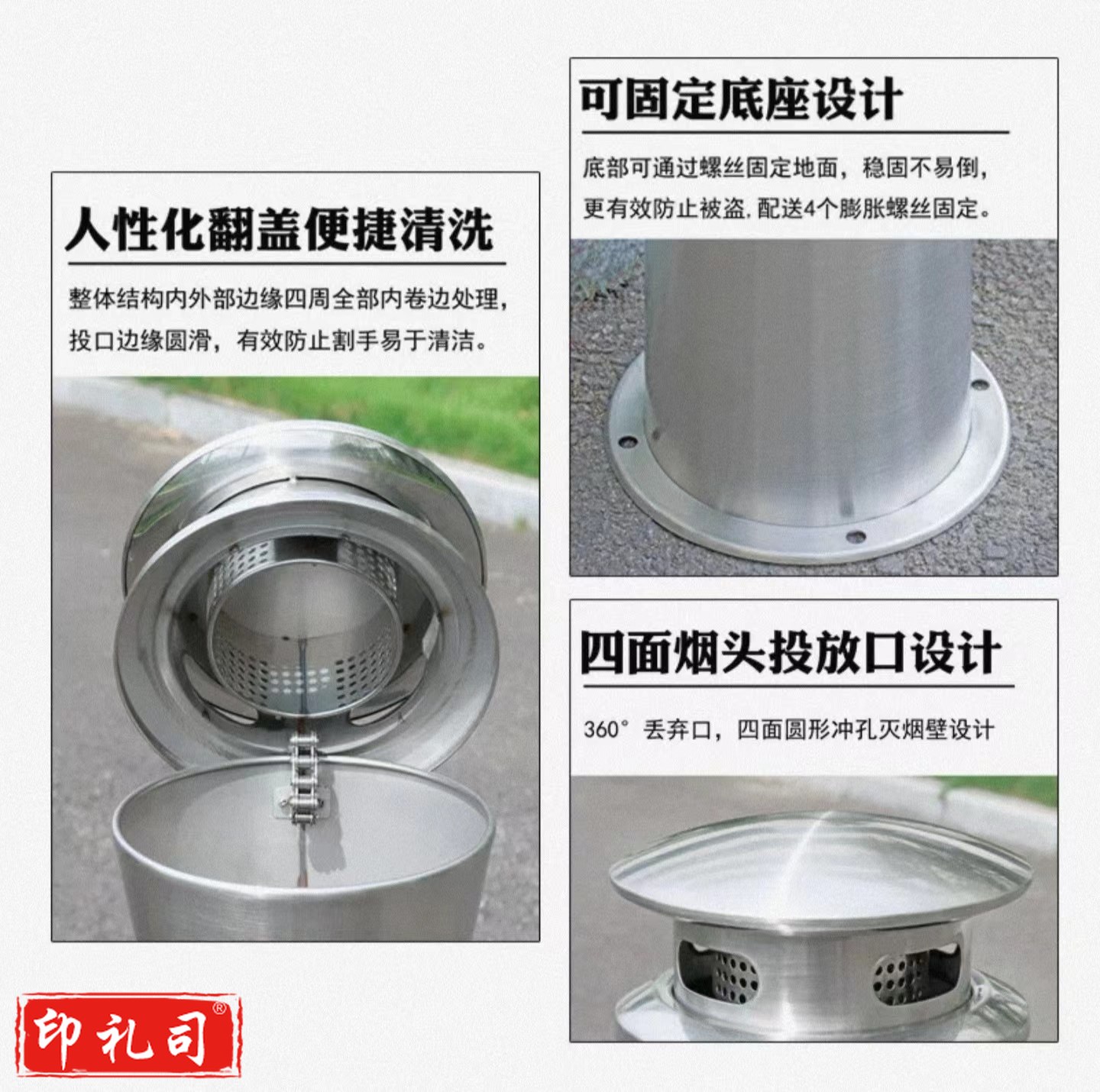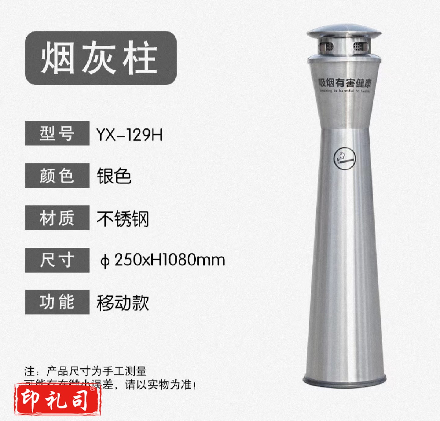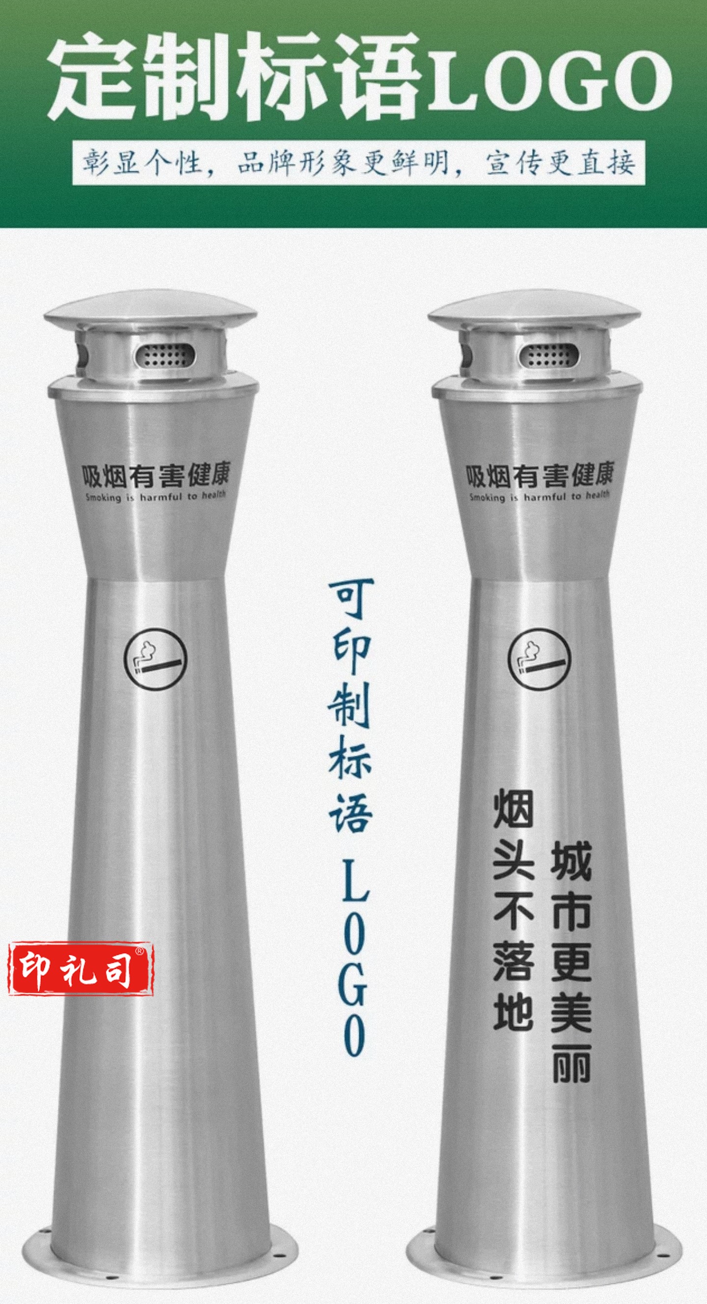单位学校烟灰柱立式烟蒂柱立式烟灰桶烟蒂柱不锈钢户外不锈钢灭烟桶户外吸烟区烟灰缸室外落地灭烟垃圾桶 固定款/移动款可选 可定制标语LOGO