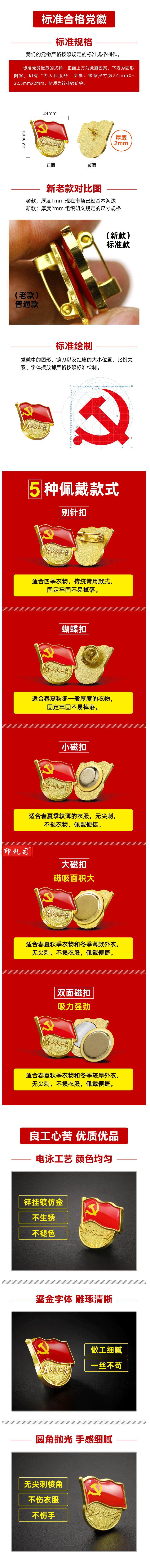 党徽 党员徽章 大磁扣(10个)装厚2mm 为人民服务党徽胸章