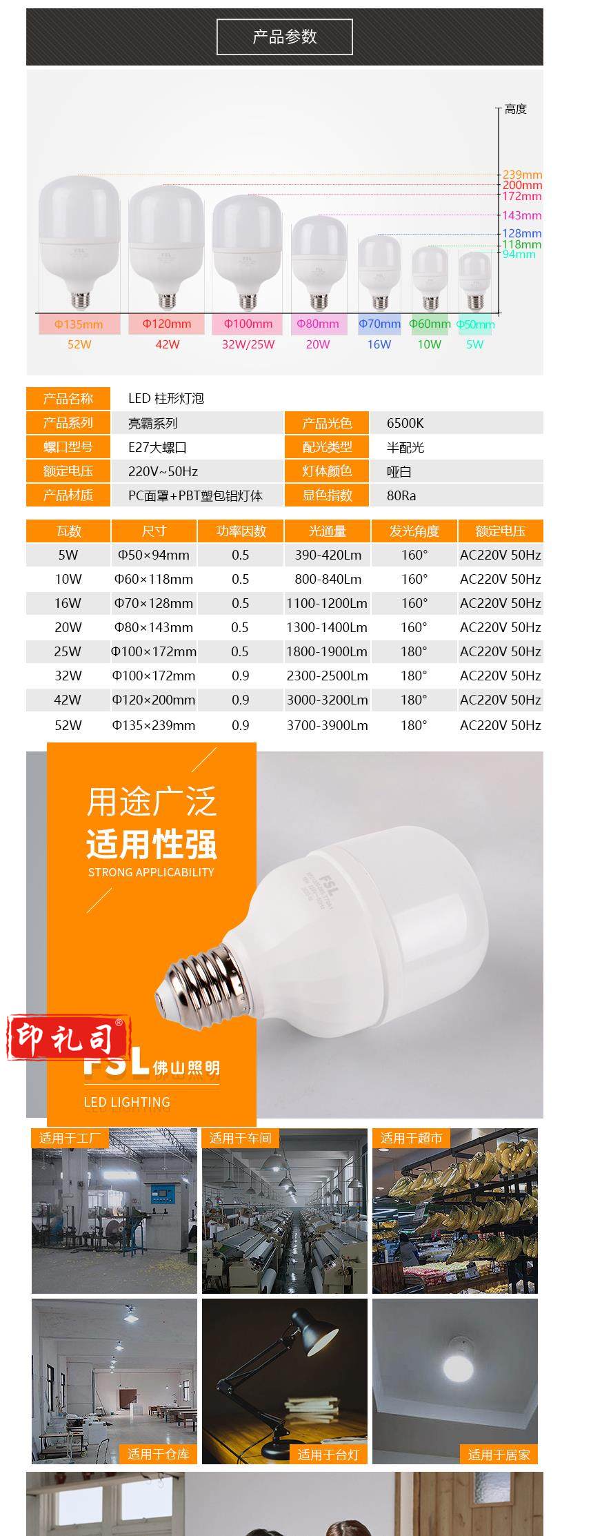 佛山(FSL)灯泡 大功率LED球泡 52W 货号:JC