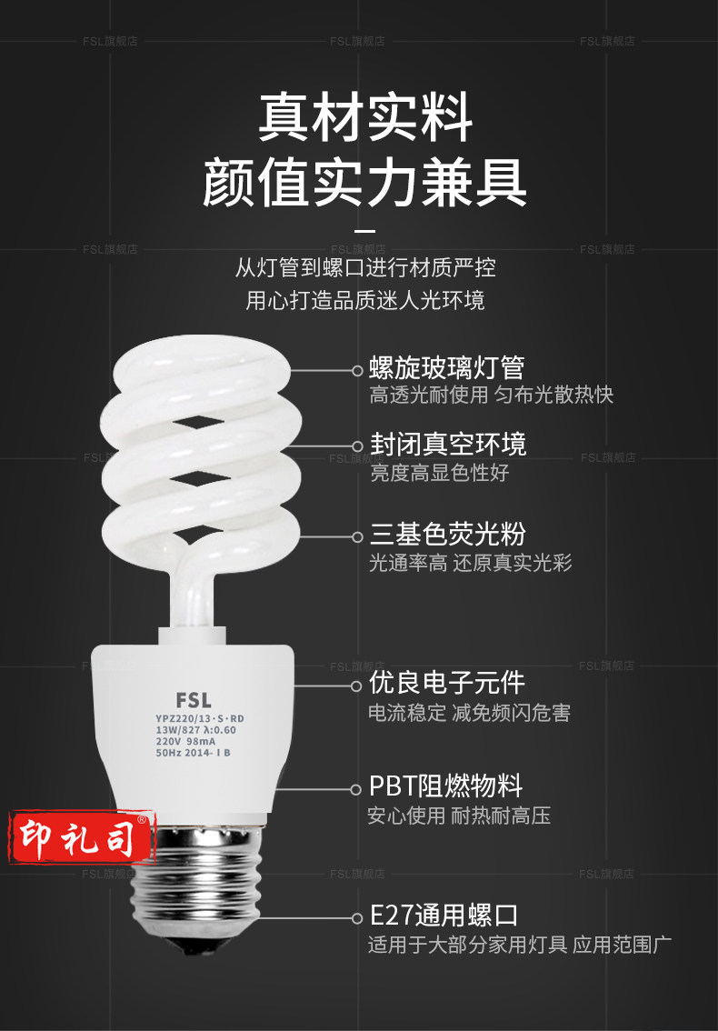 佛山照明 23W节能灯螺旋三基色荧光灯节能灯E27螺口白光