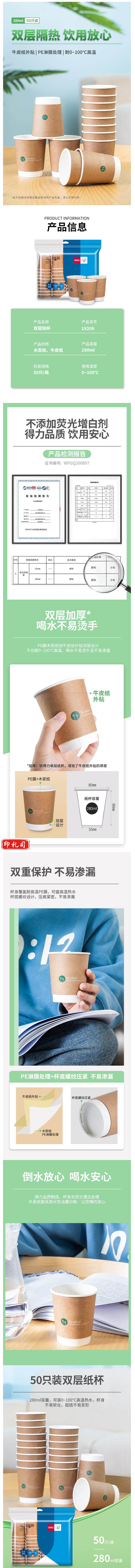 得力(deli)280ml一次性杯子 纸杯/水杯 牛皮纸外层 双层加厚 50个装 19209(每箱16包)