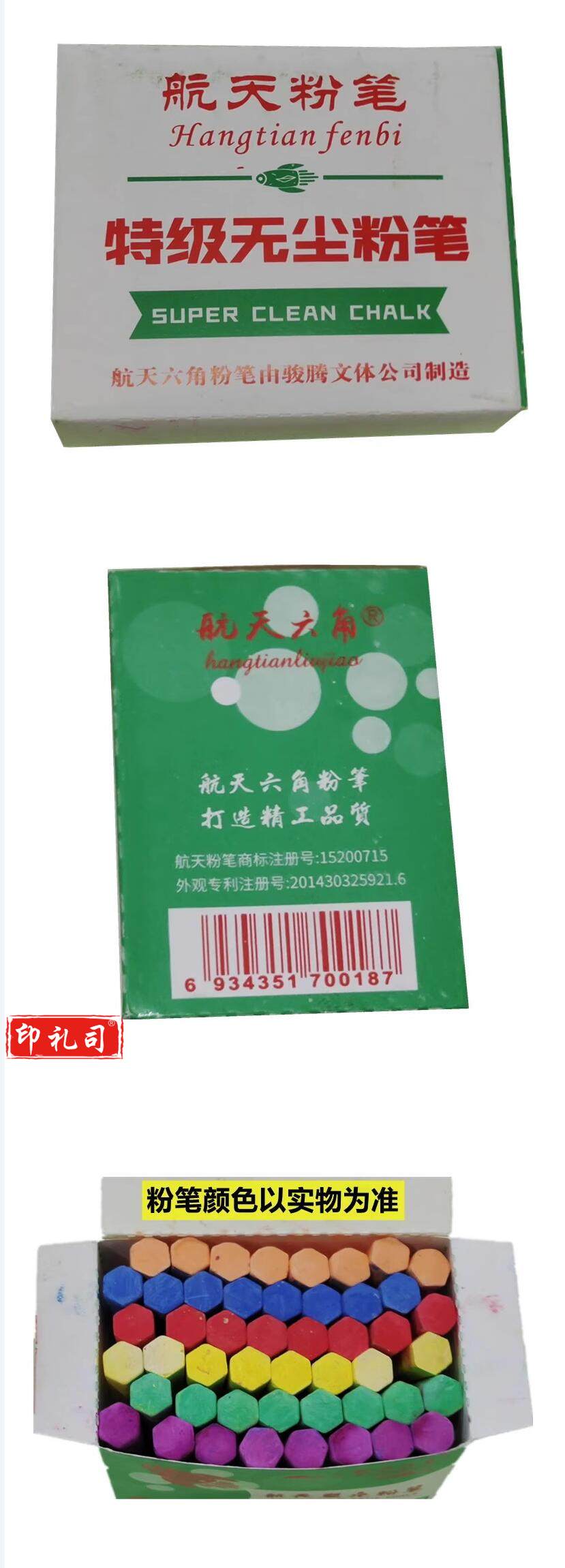 航天牌 六角彩色粉笔 无尘彩色粉笔 彩色黑板粉笔 48支/盒 50盒/箱 单位:盒