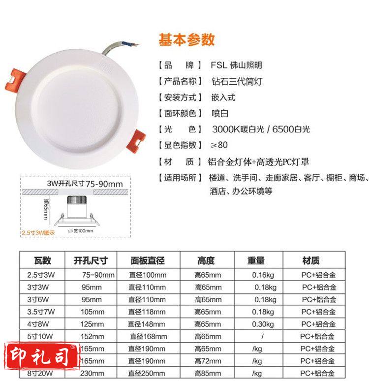 佛山 FSL LED筒灯 6寸 20W钻石三代 全白 开孔165mm