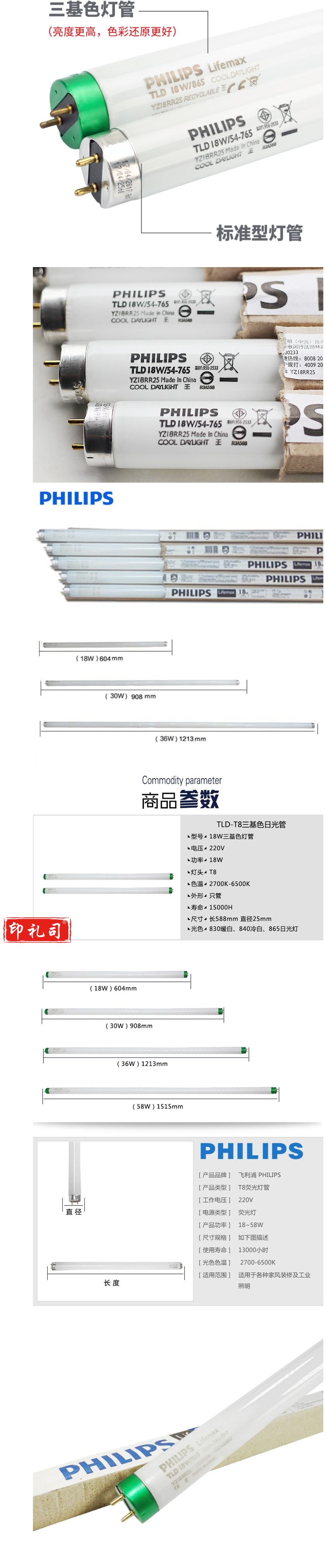 飞利浦 T8 0.6米 18W日光灯灯管 6500K白光