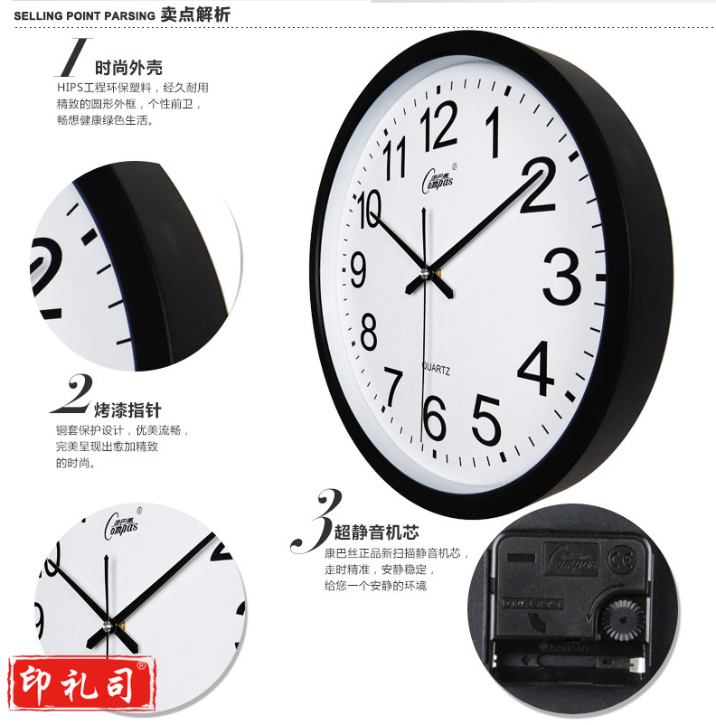 康巴丝 28厘米 挂钟 时钟挂表简约创意石英钟黑白