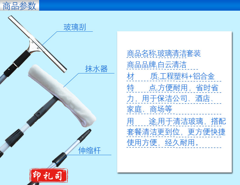 白云玻璃刮擦伸缩杆35CM宽、2.4米伸缩把