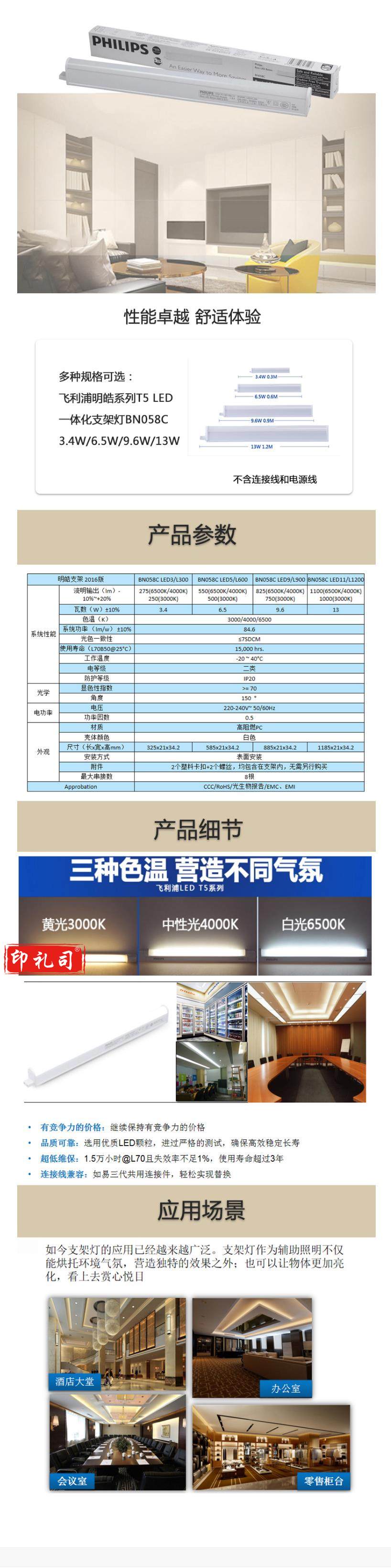 飞利浦 1.2米 13W 4000-6500K LED一体化支架 货号:ZF