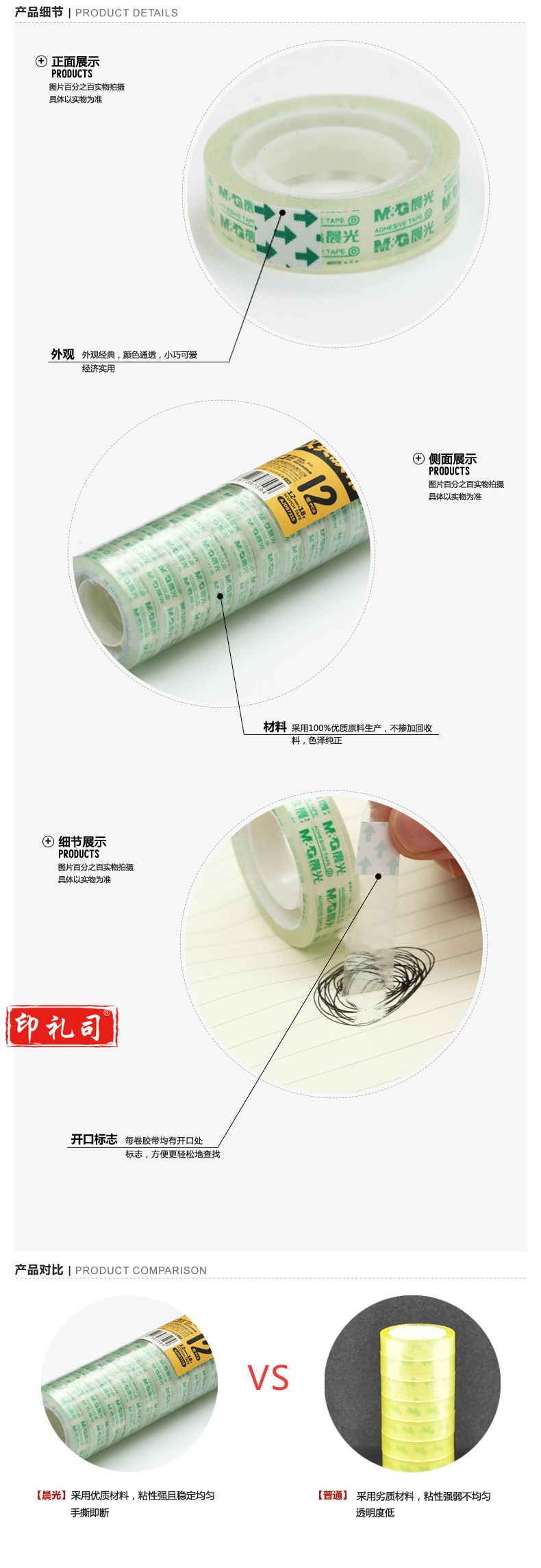 晨光(M&G)文具胶带12mm*18Y 学生透明胶带 办公用品AJD97319 一包12卷